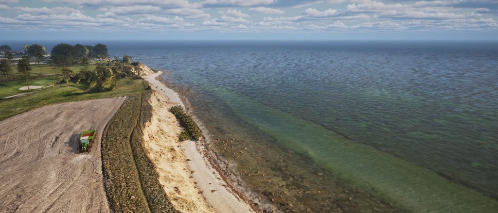 Communicating environmental change and mitigation scenarios to stakeholders and decision-makers can be challenging. Immersive environments offer an innovative approach for knowledge transfer, allowing science-based scenarios to be discussed interactively. The use of such environments is particularly helpful for the analysis of large, multi-component geospatial datasets, as commonly employed in the classification of ecosystems. Virtual environments can play an important role in conveying and discussing the findings gathered from these geomorphometric datasets. However, textured meshes and point clouds are not always well suited for direct import to a virtual reality or the creation of a truly immersive environment, and often result in geometrical artifacts, which can be misinterpreted during the import to a game engine. Such technical hurdles may lead to viewers rejecting the experience altogether, failing to achieve a higher educational purpose. In this study, we apply an asset-based approach to create an immersive virtual representation of a coastal environment. The focus hereby is on the coastal vegetation and changes in species distribution, which could potentially be triggered by the impact of climate change.
